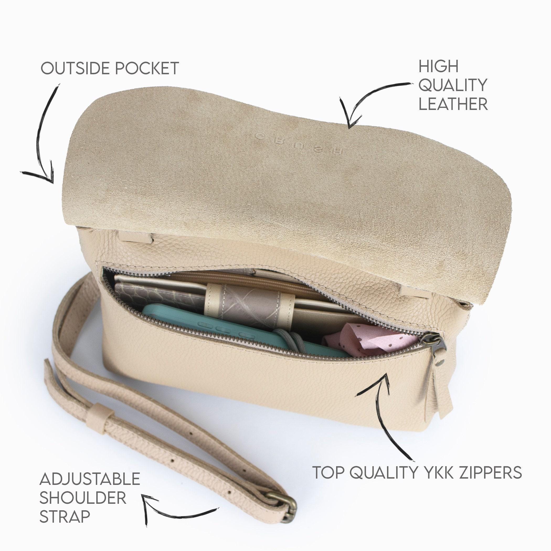 Bolso bandolera de cuero hecho a mano: Bolso bandolera con cremallera ELNA