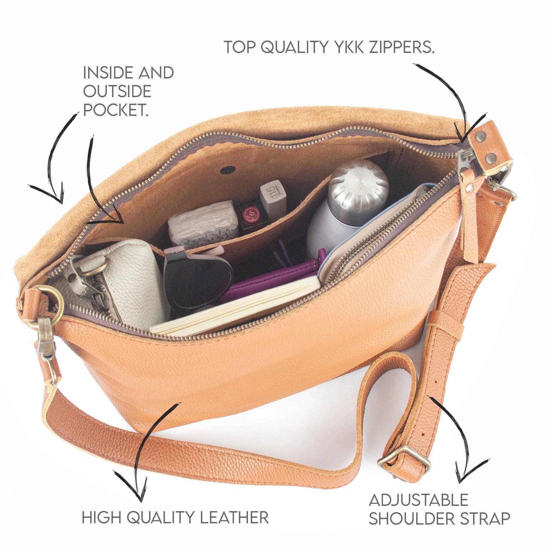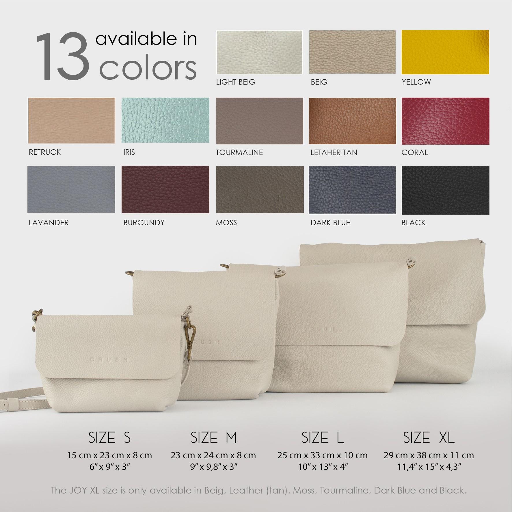 Bolso bandolera de piel: bolso de hombro con cremallera hecho a mano, 11 colores