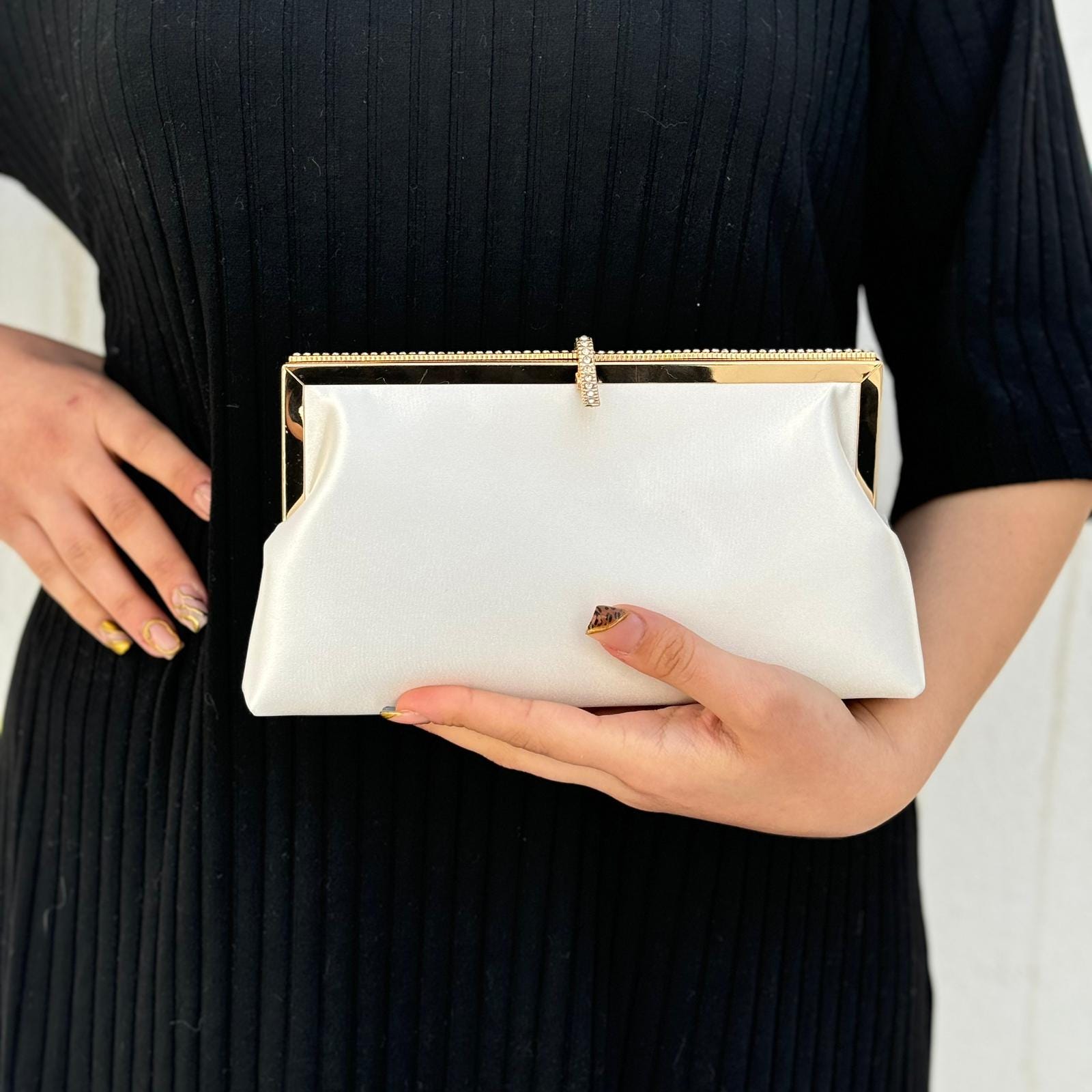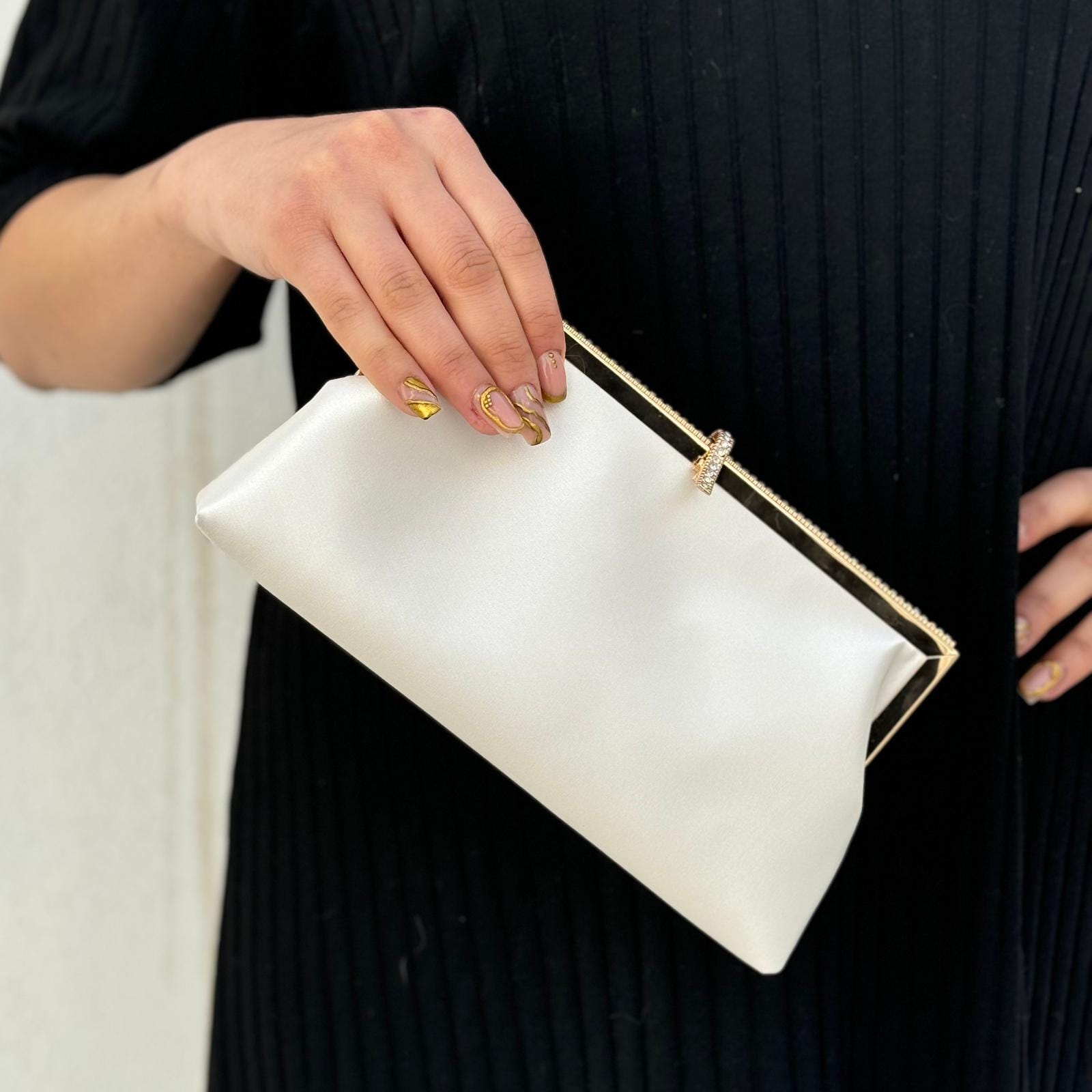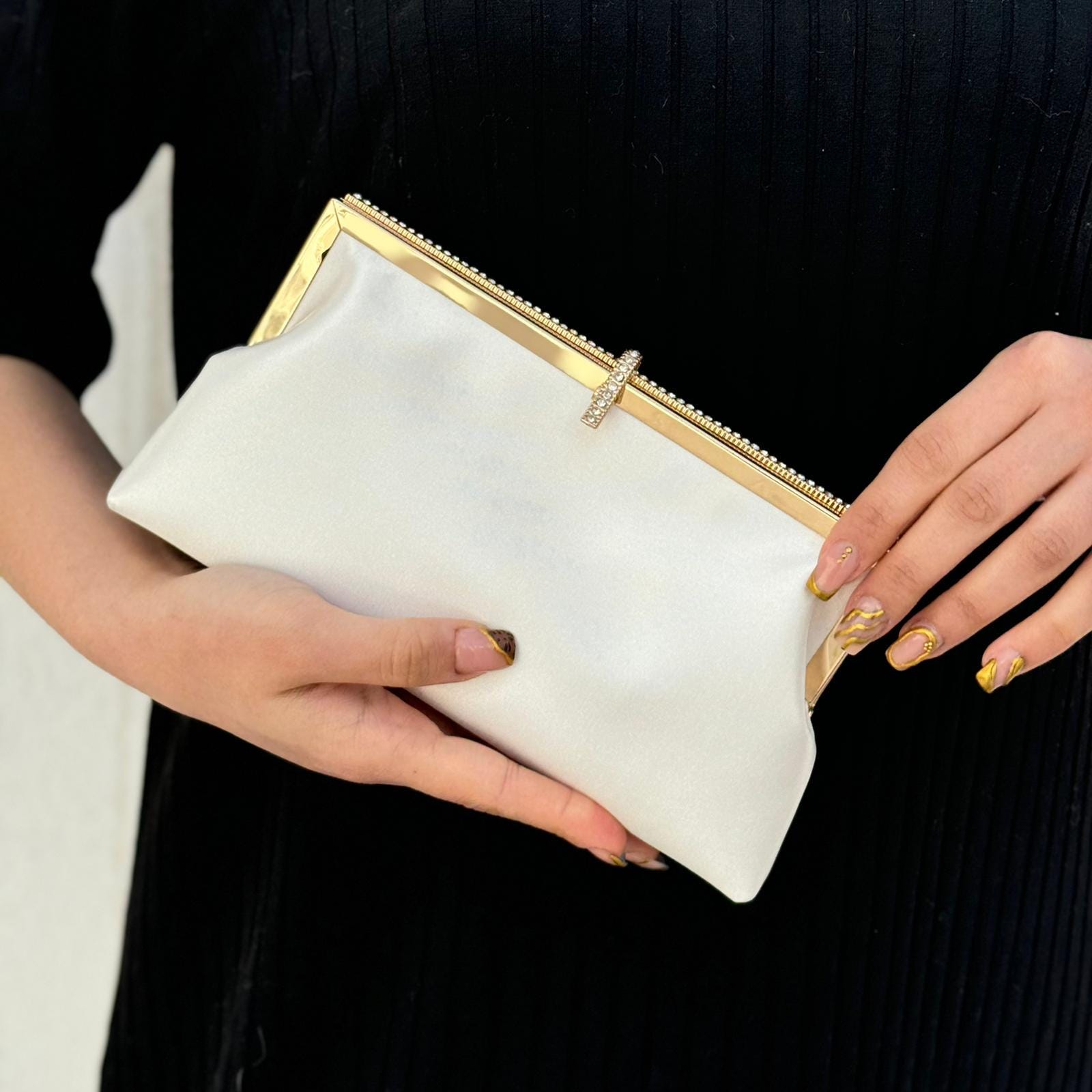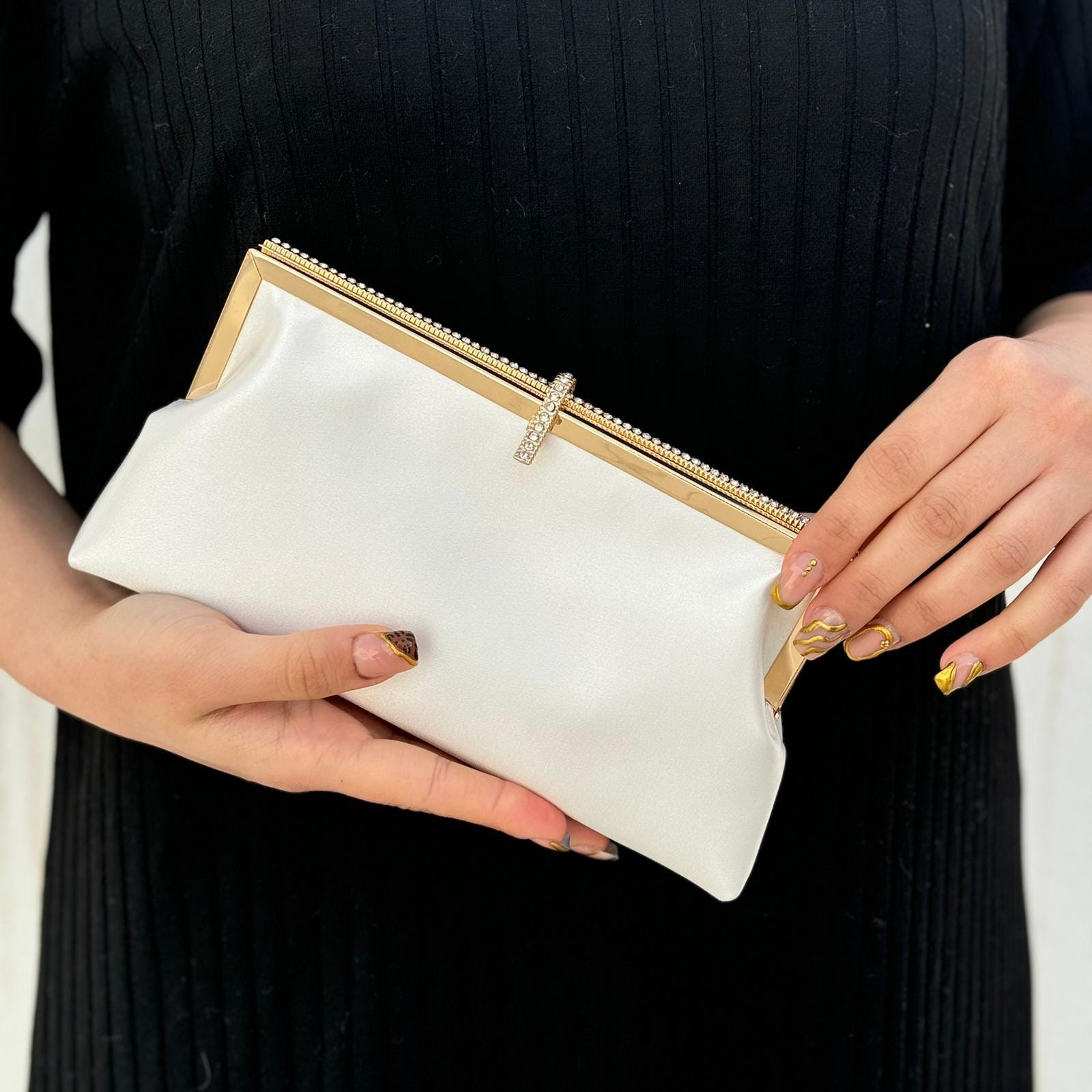 Bolso de novia de satén de nácar: bolso de mano para invitada de boda, fiesta y noche.