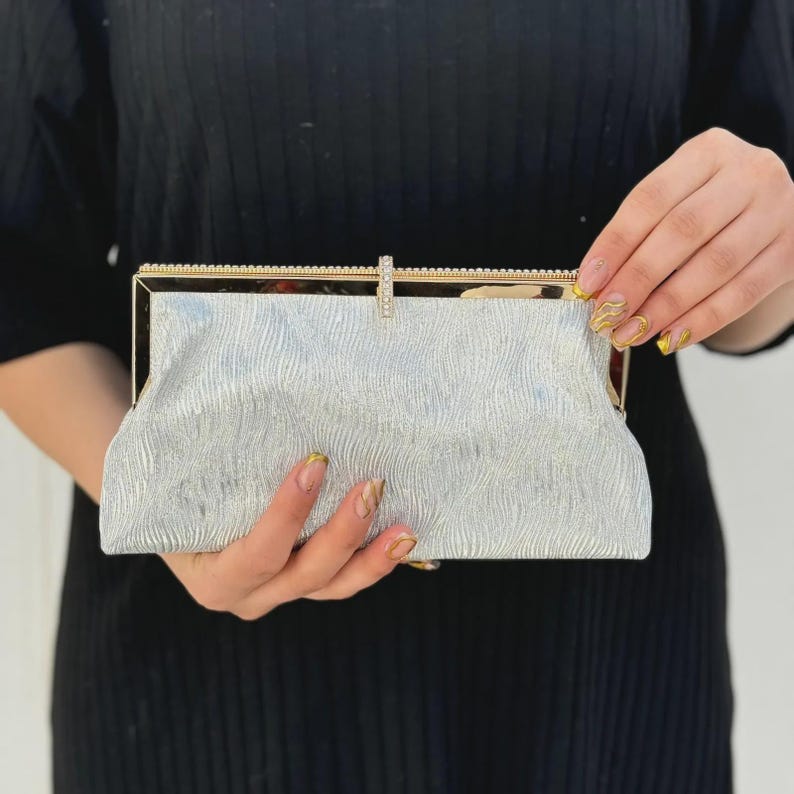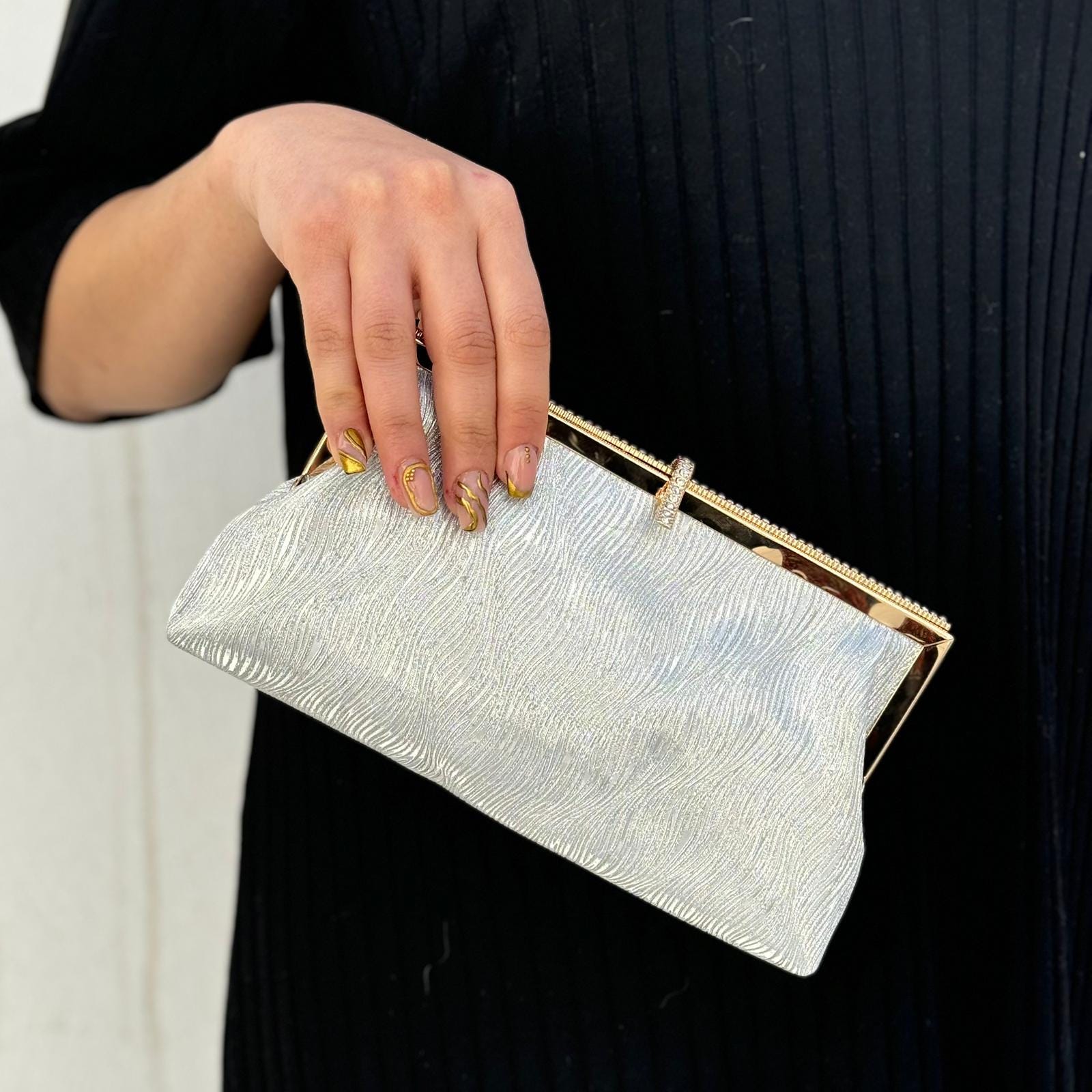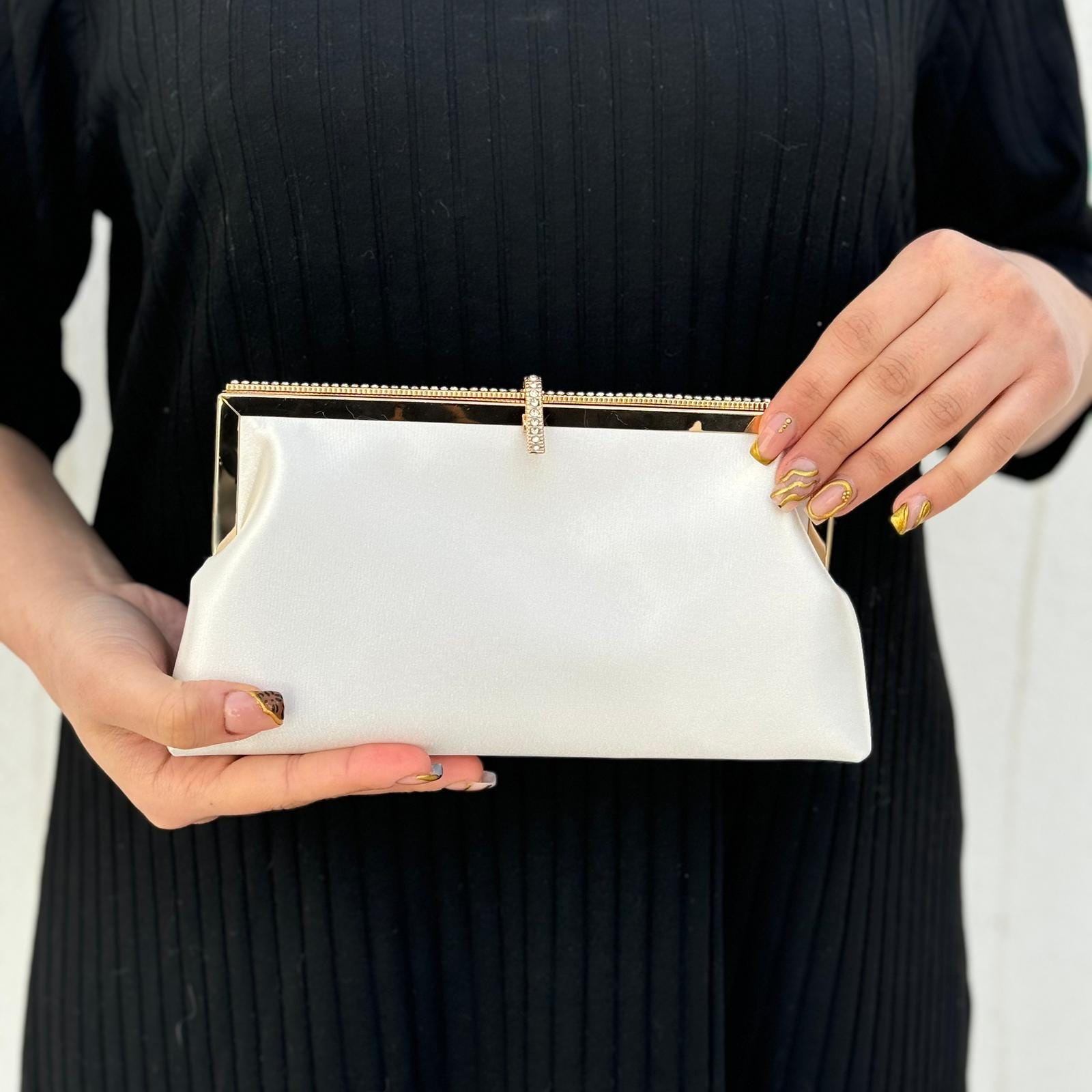 Bolso de novia de satén de nácar: bolso de mano para invitada de boda, fiesta y noche.