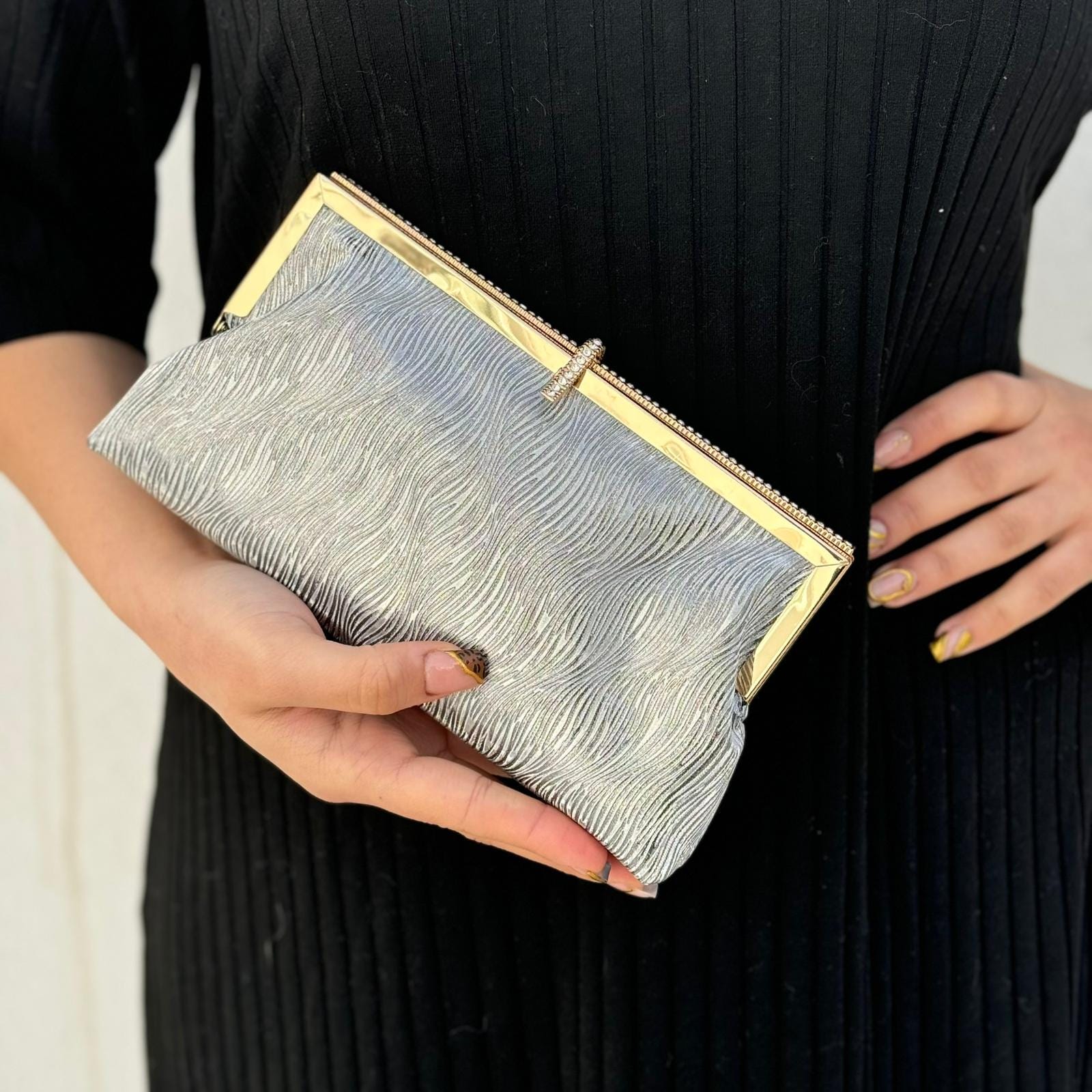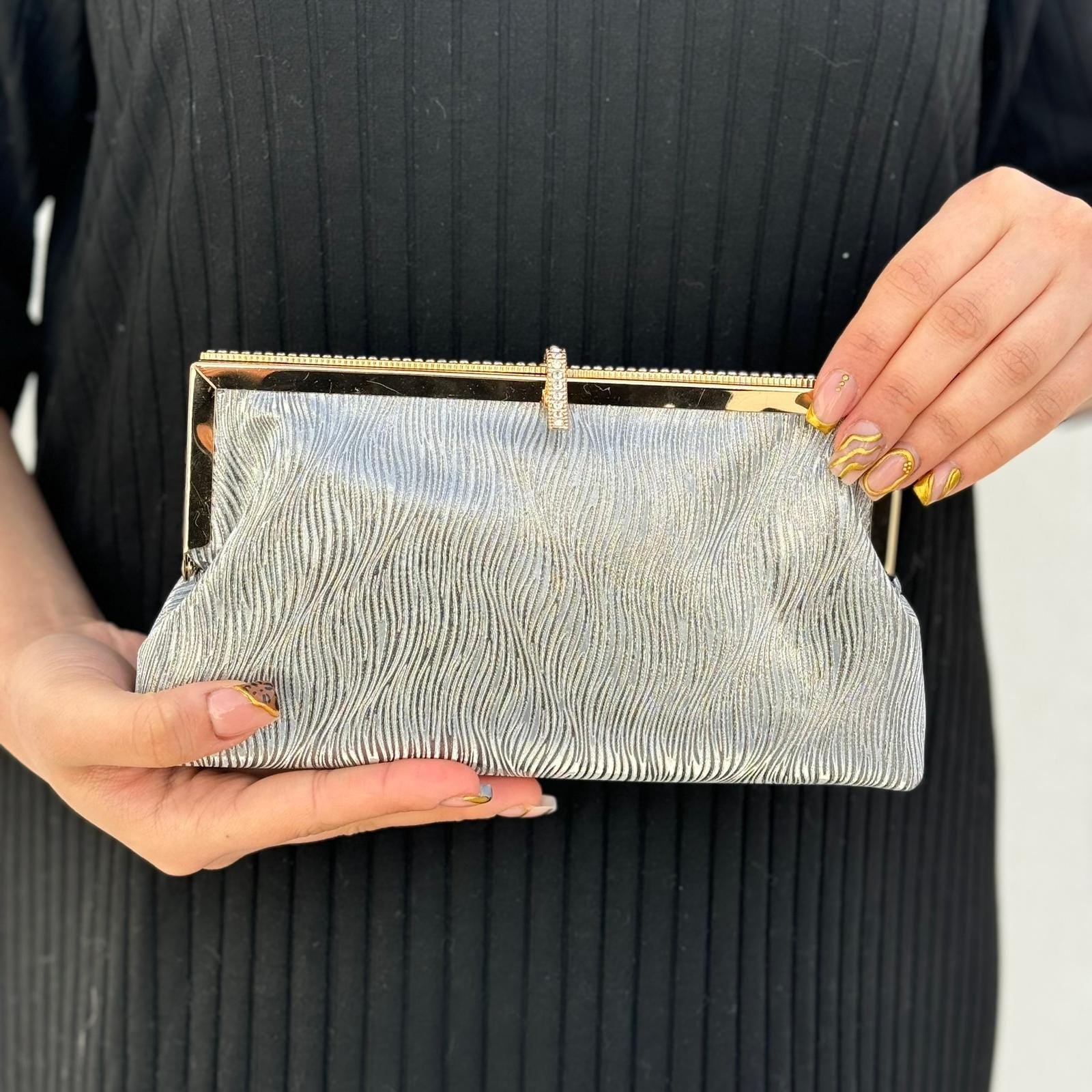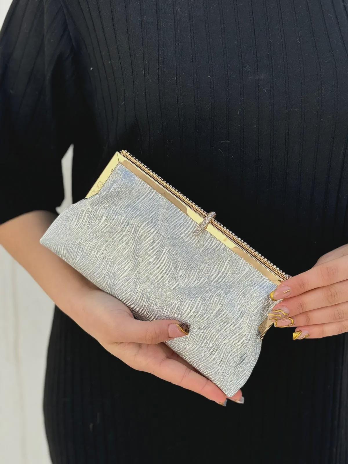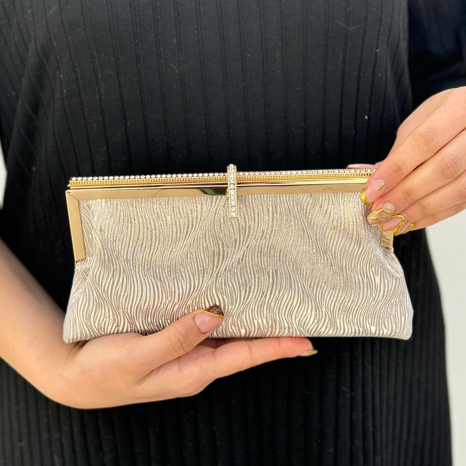 Bolso de novia de satén de nácar: bolso de mano para invitada de boda, fiesta y noche.
