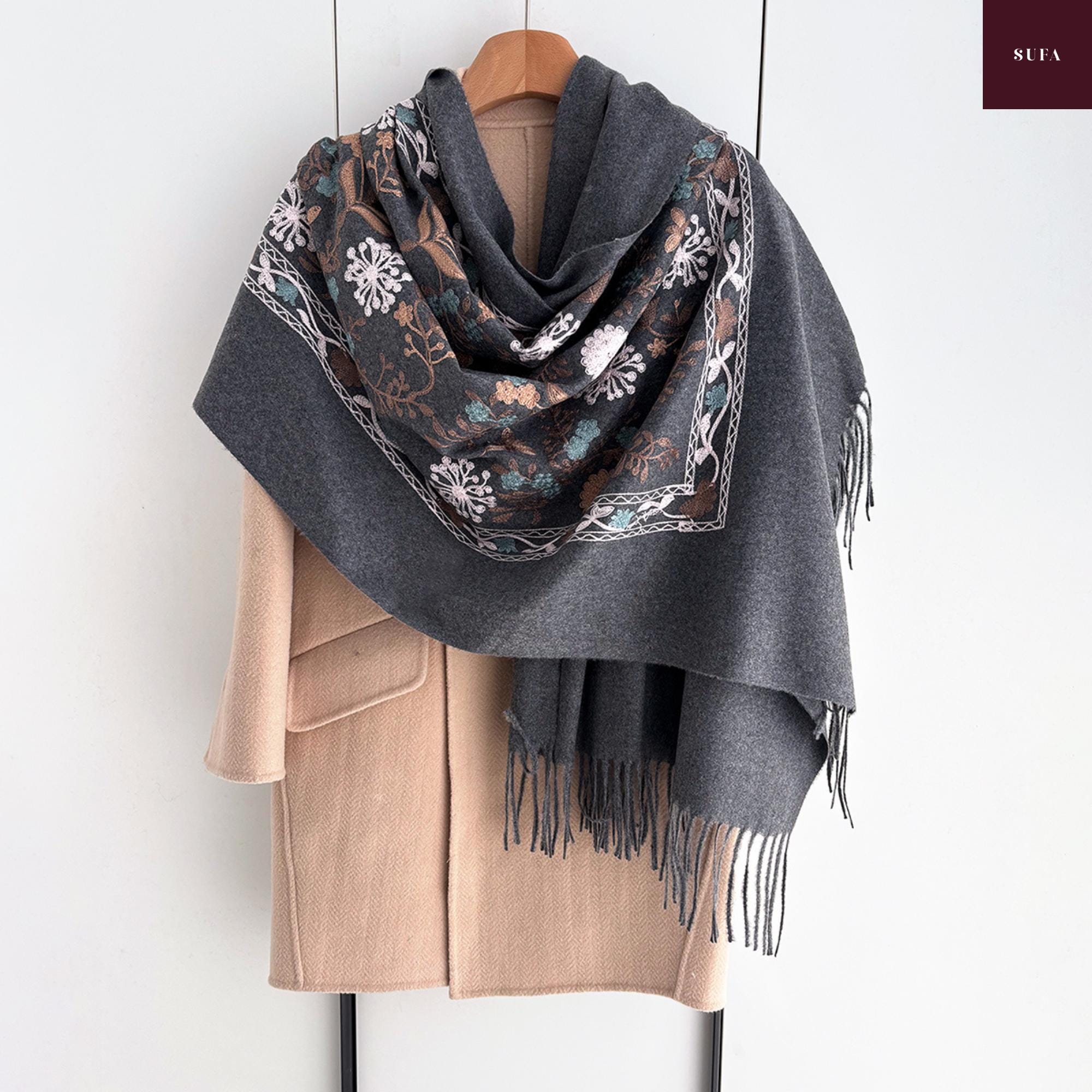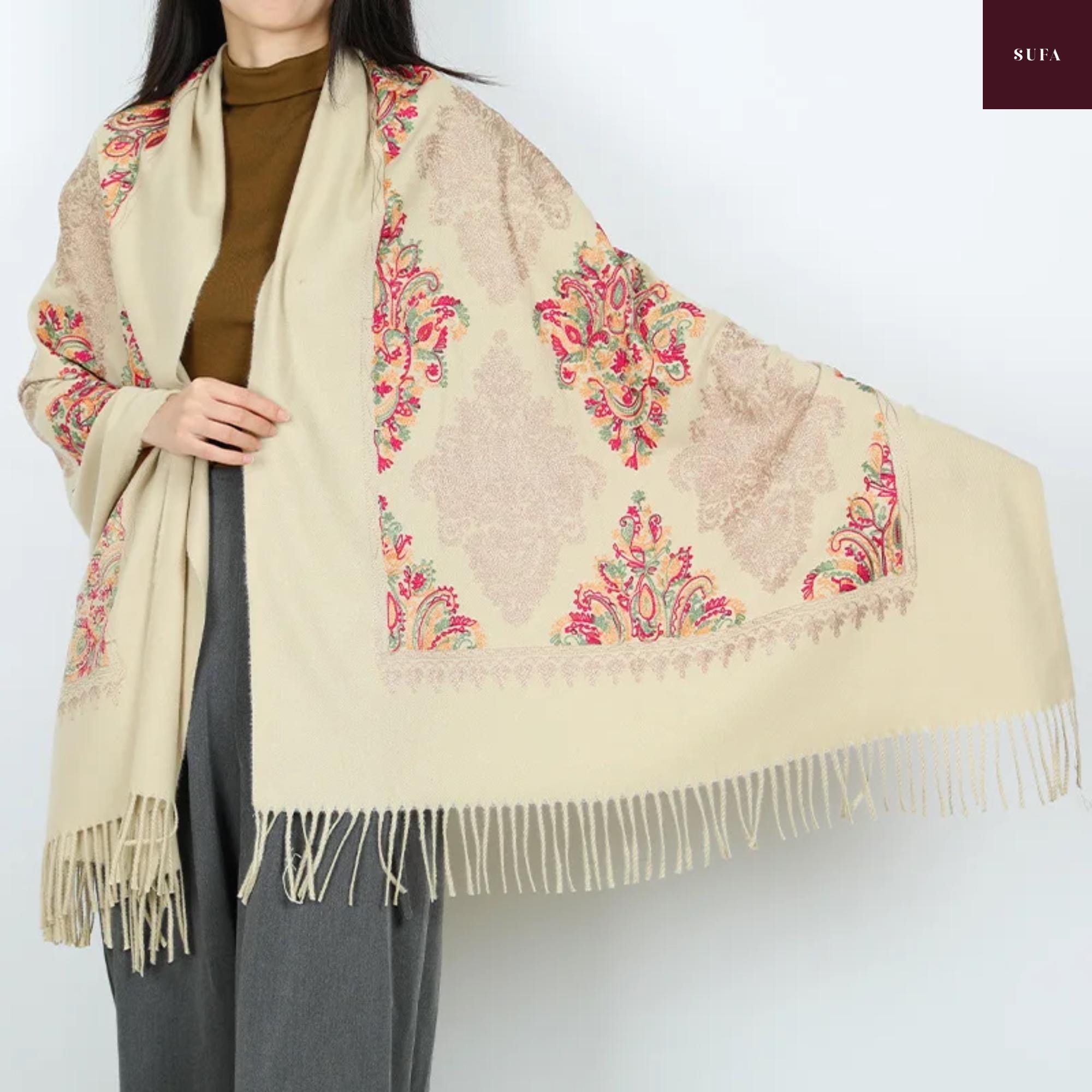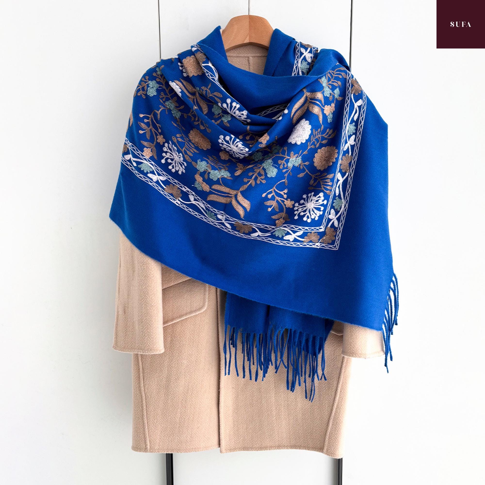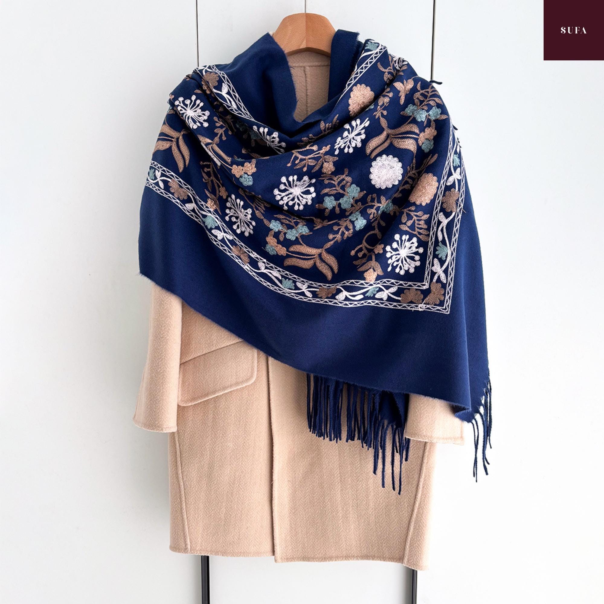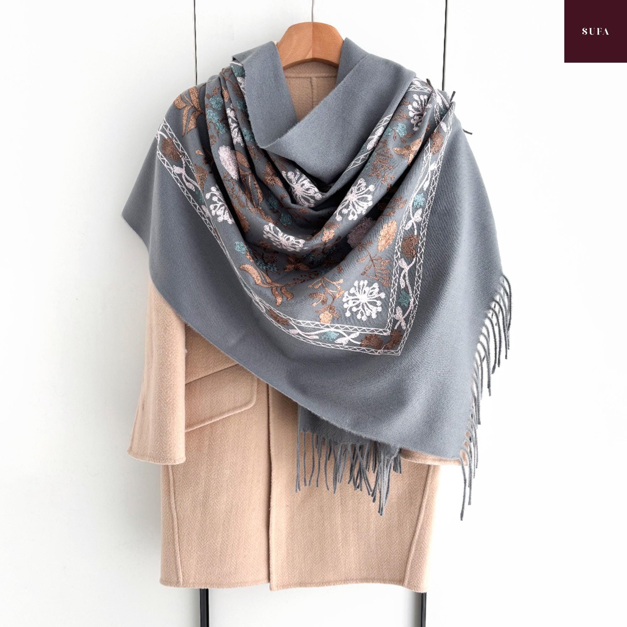 Bufanda de invierno bordada: Chal de lujo hecho a mano en mezcla de cachemir y pashmina