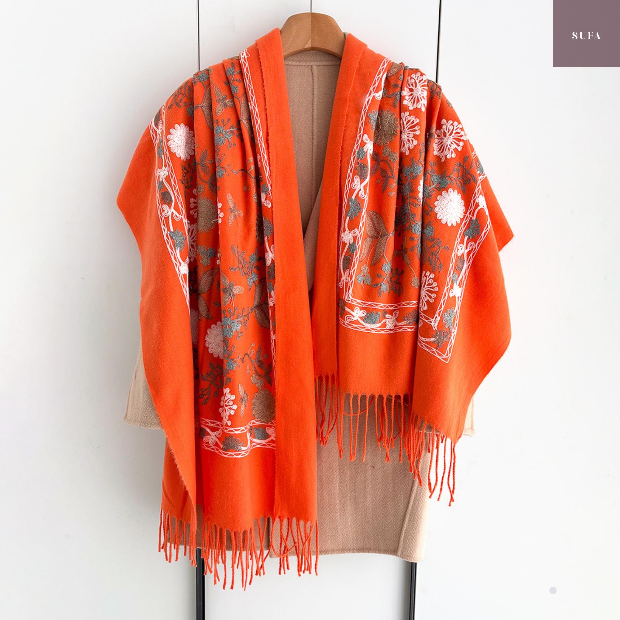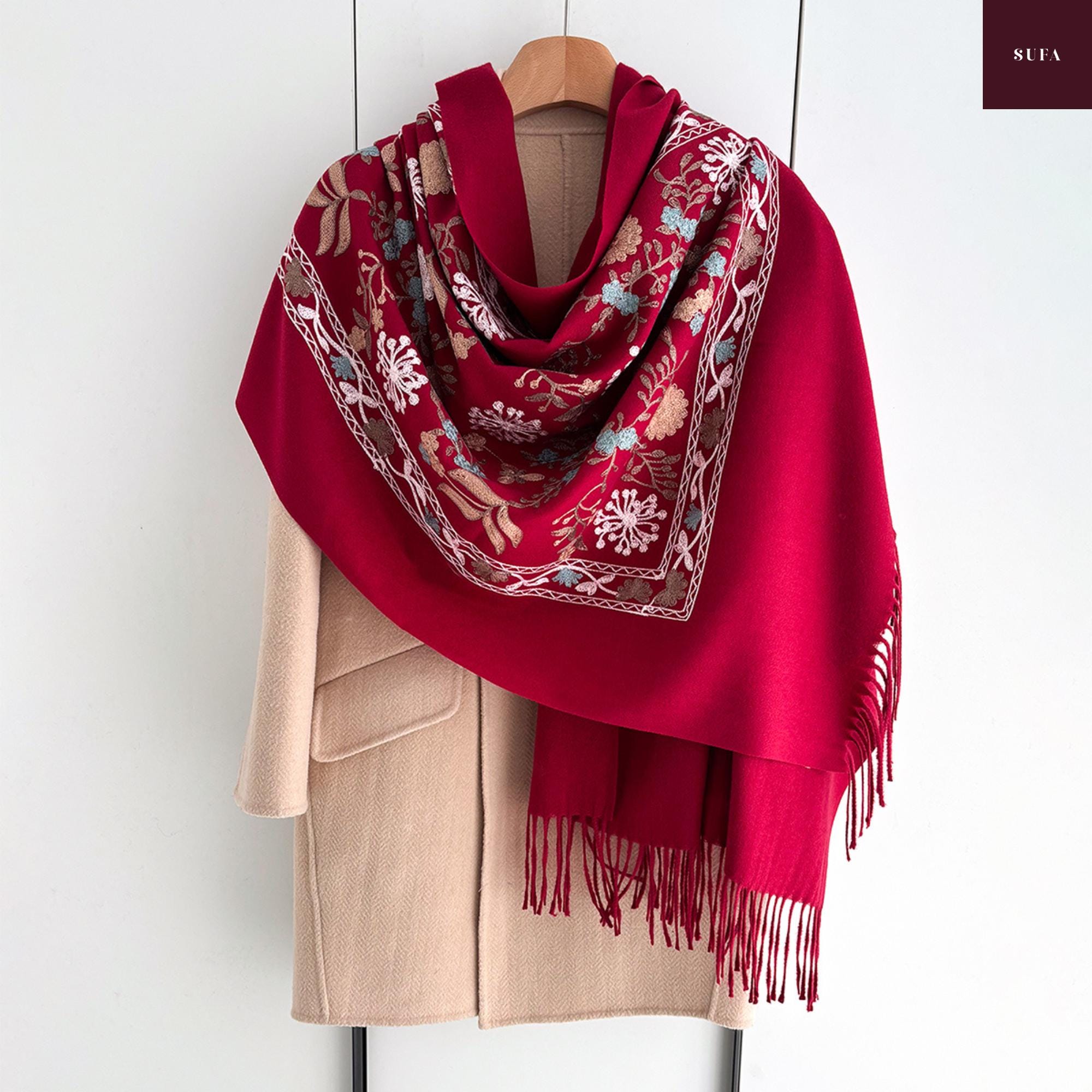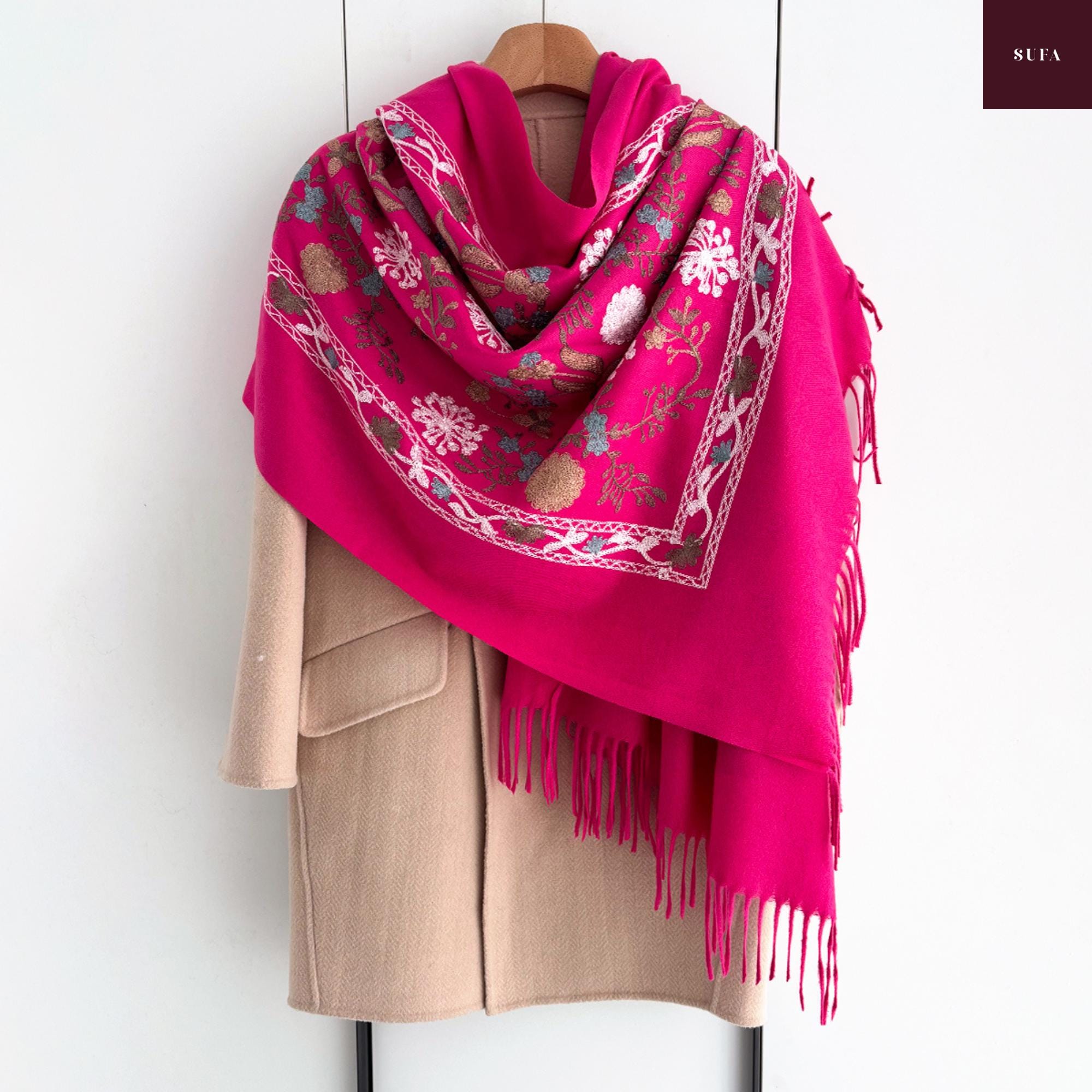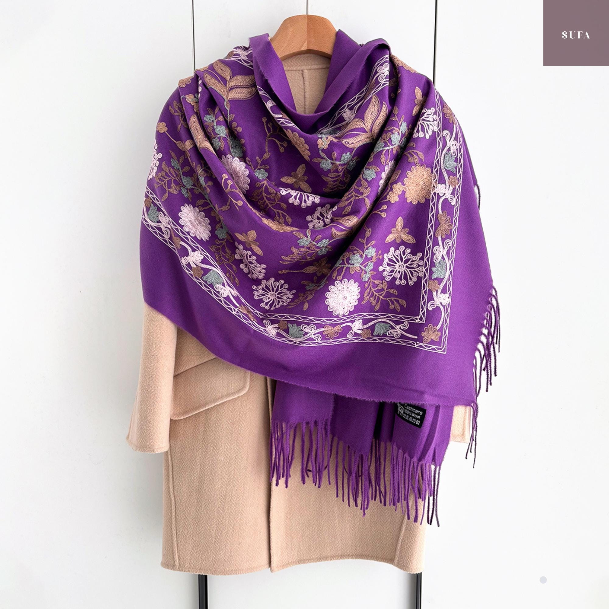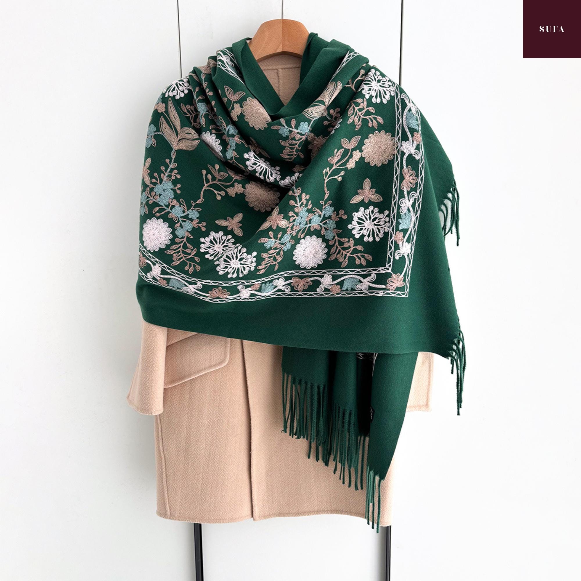 Bufanda de invierno bordada: Chal de lujo hecho a mano en mezcla de cachemir y pashmina