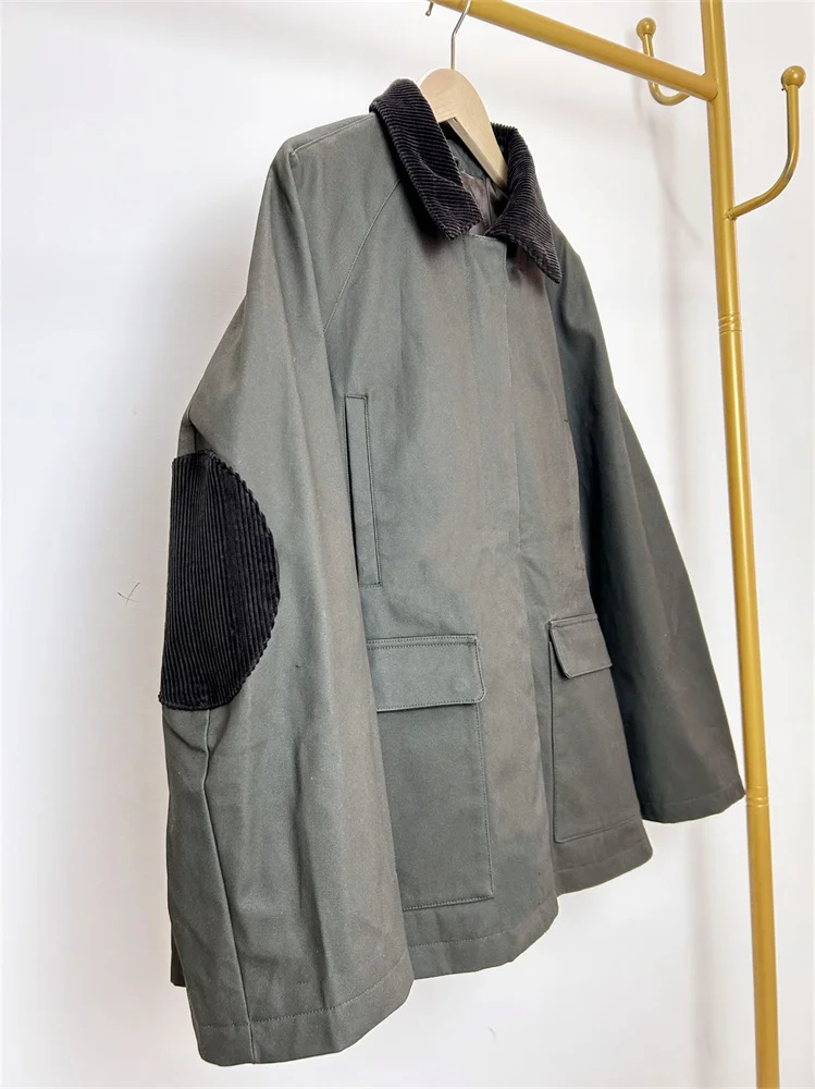 Sé el primero en valorar “Chaqueta con cremallera y cuello vuelto para mujer, abrigo informal clásico de pana de Color Patchwork con dos bolsillos, Ttop con encerado”