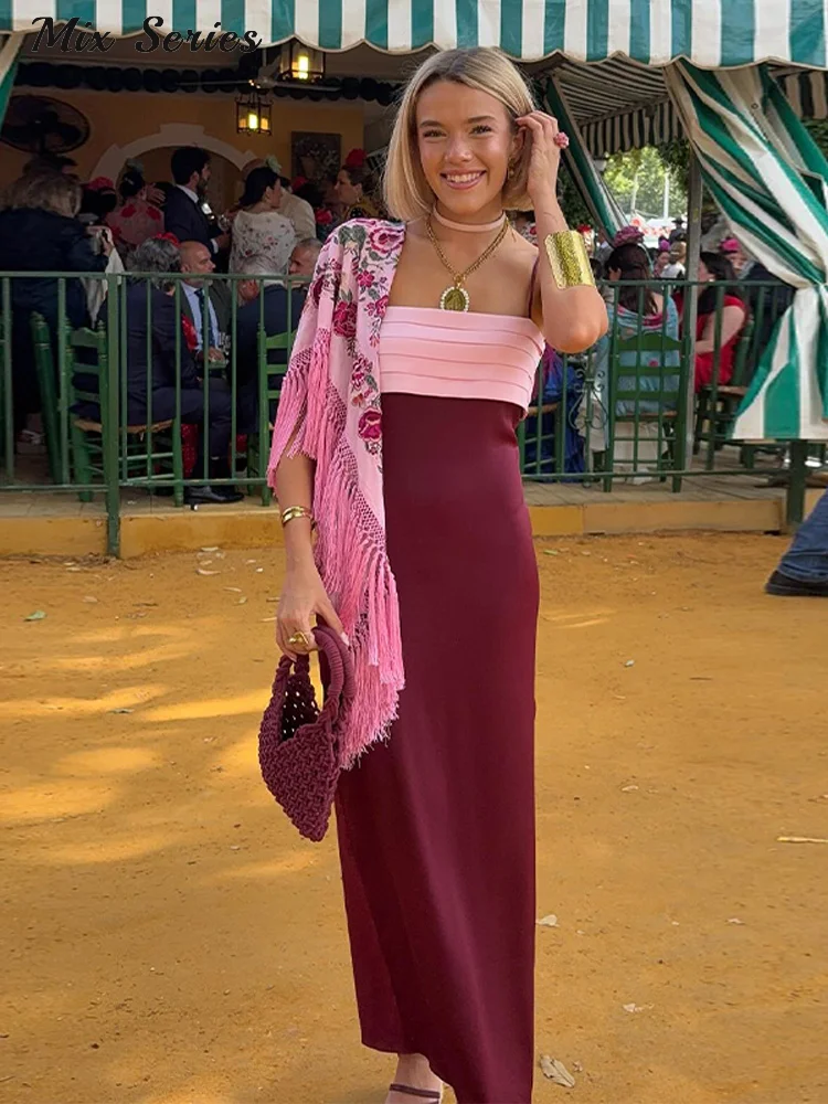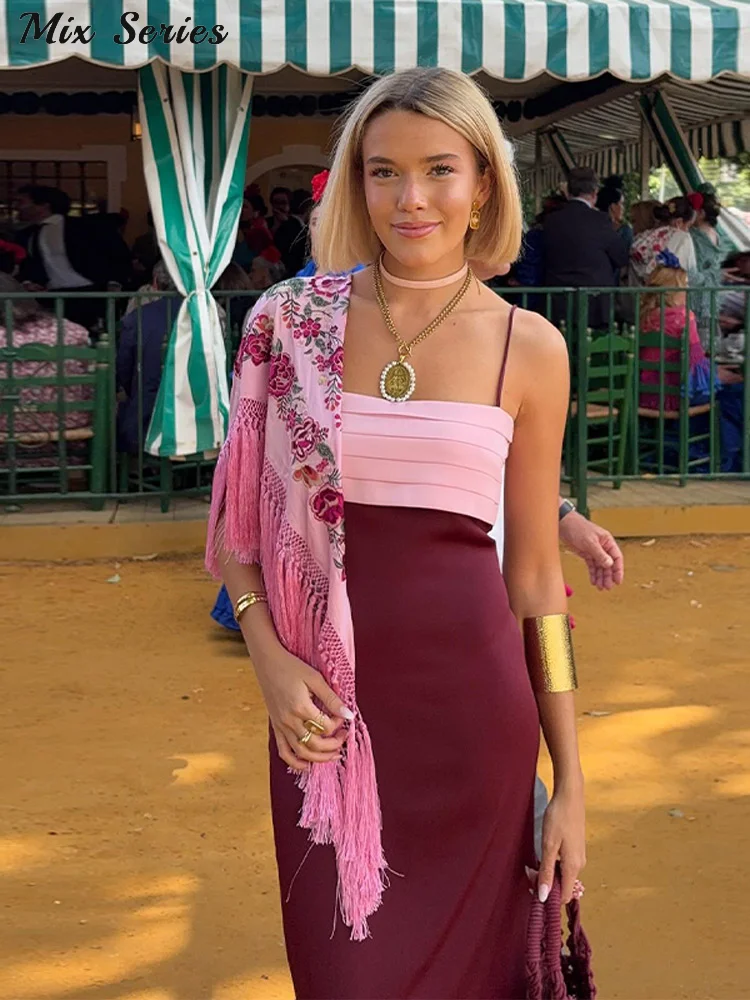 Elegante Vestido Largo de Tirantes para Mujer, Sin Mangas, con Espalda Descubierta, Plisado y Abertura Lateral.