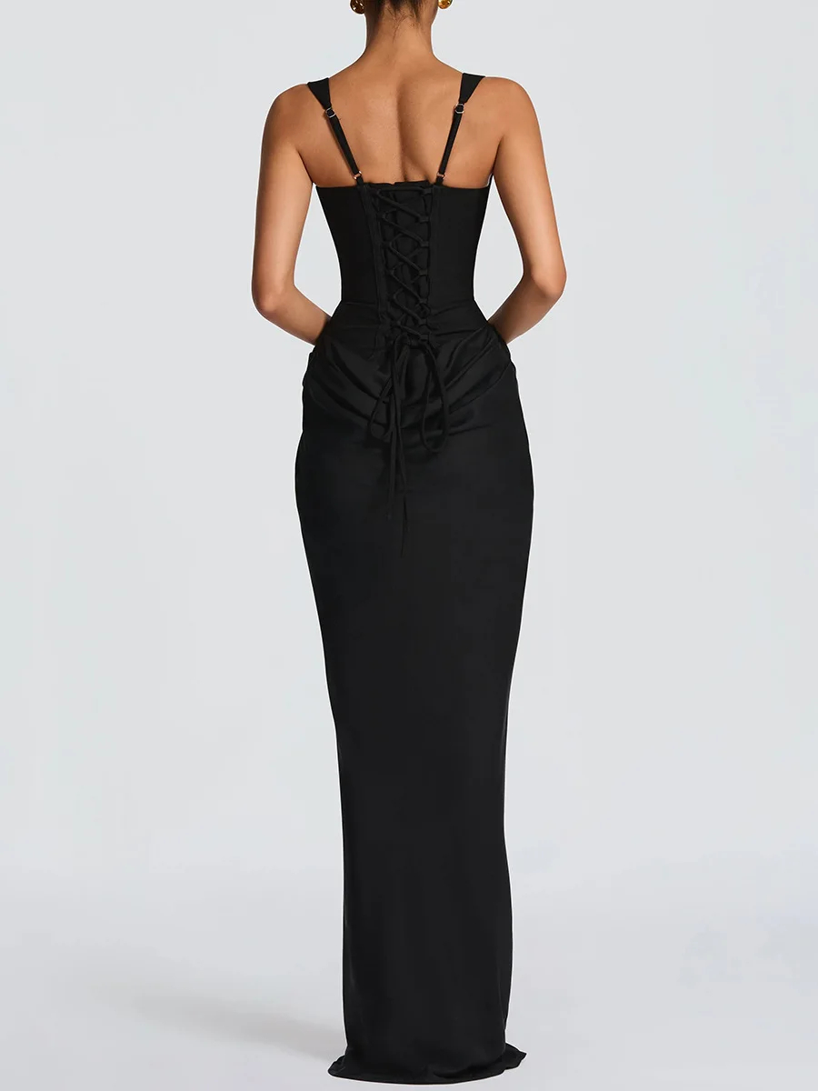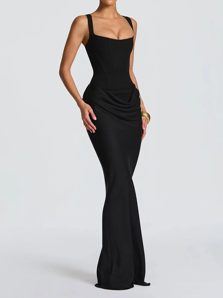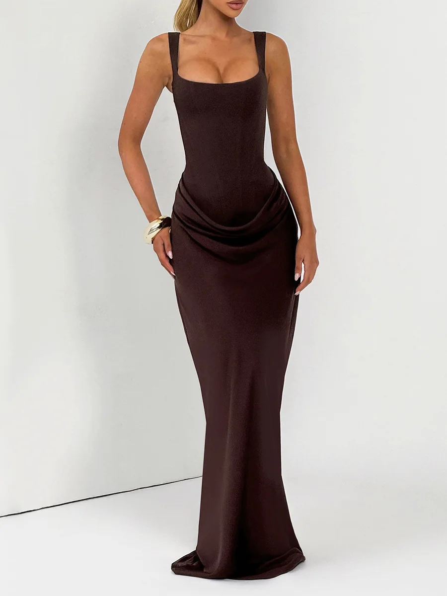 Vestido Maxi Marrón con Cuello Cuadrado y Fruncido al por Mayor, OEM, ODM, Dropshipping, Vestido Formal de Fiesta sin Mangas para Mujer, Vestidos Corset Ajustados